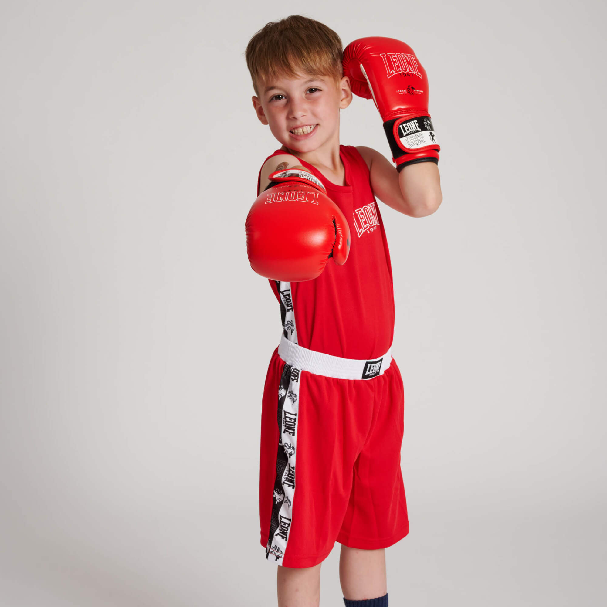 Dalla collezione Iconic Leone 1947 arriva la linea dedicata ai piccoli Pugili: i Pantaloncini Iconic Leone 1947 AB232J e le Canotte Boxe Iconic AB231J.